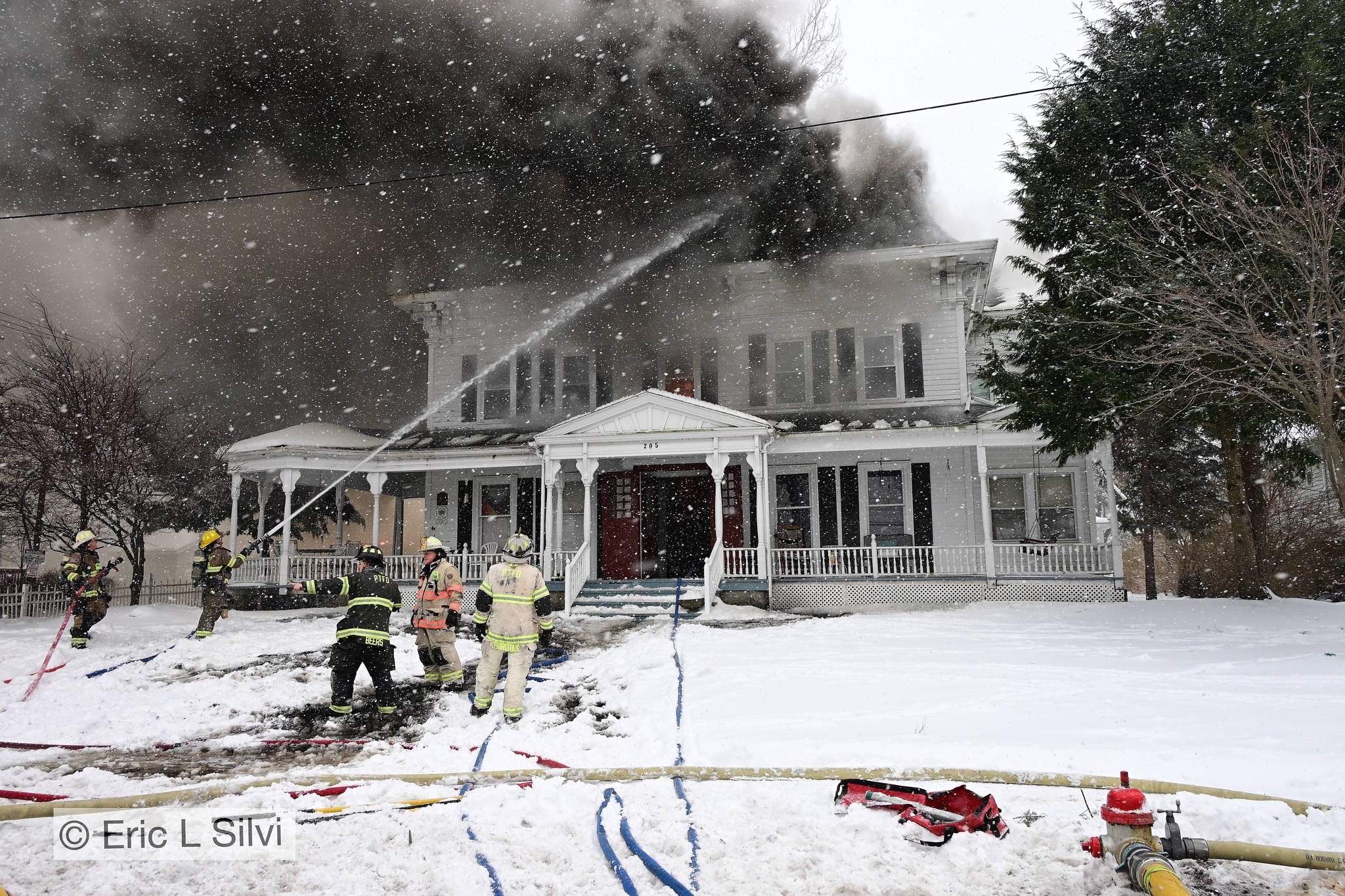 At approximately 11:00 a.m. on January 15, 2025, the Painesville City Fire Department (PCFD) was dispatched to a house fire at 205 Mentor Avenue. Upon arrival, units found flames spreading up the exterior of the large historic home and into the attic. Given the scale of the fire and extreme weather conditions, MABAS Alarm 2311 was activated, escalating the response to a third alarm and bringing in 16 additional fire departments, including Hambden Fire Department.